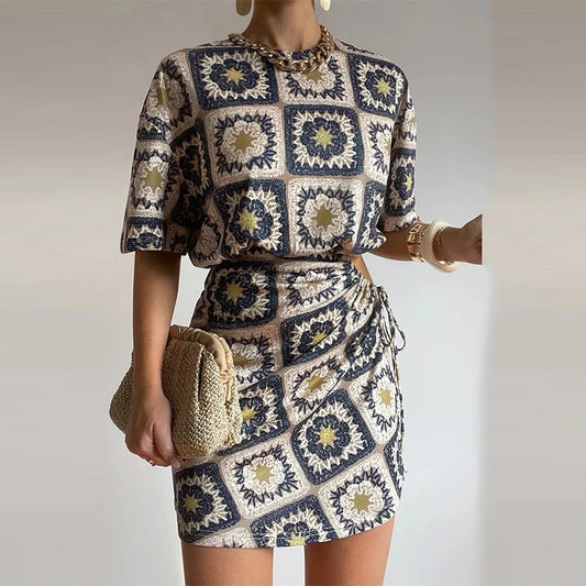 LuxeDraw – Dames O-Hals Mini Jurk met Treksnoer