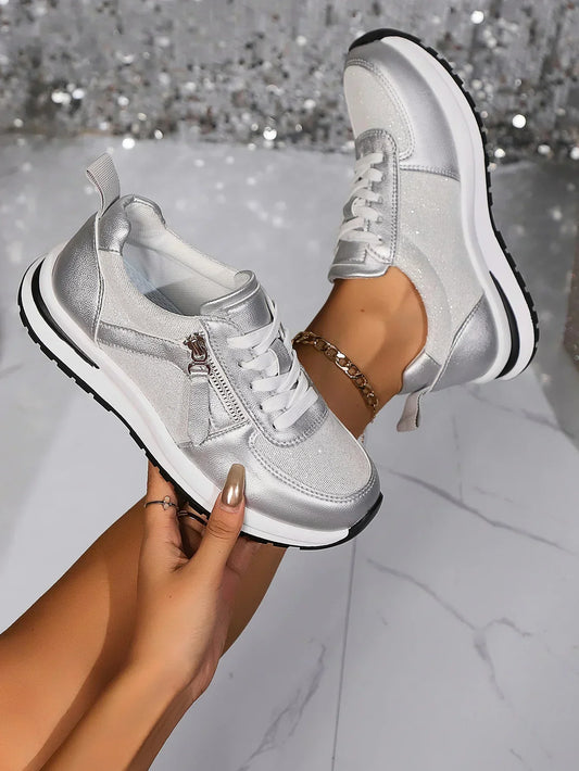 AanbiedingLynn – Zilveren Sneakers met Rits