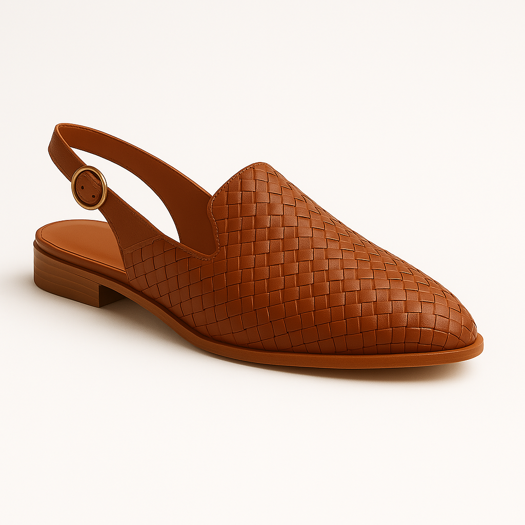 Deze elegante instappers op lage hak combineren een subtiel spitse neus met een gevlochten textuur die verfijning en karakter uitstraalt. De open hiel zorgt voor een luchtige pasvorm, perfect voor warmere dagen of een stijlvolle, nonchalante look. Dankzij het zachte voetbed en de flexibele zool loop je de hele dag comfortabel – of je nu naar kantoor gaat, een lunchdate hebt of een zomerse wandeling maakt.