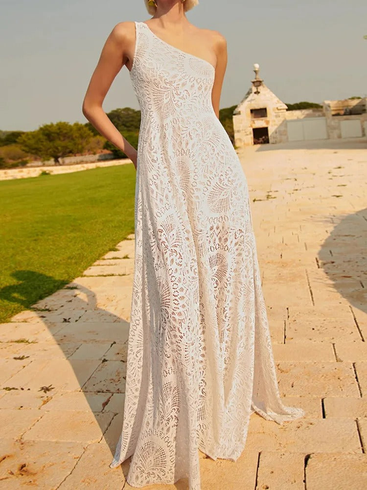 Asymmetrische halslijn: Verfijnde diagonale snit met open schouder voor een unieke, sexy uitstraling