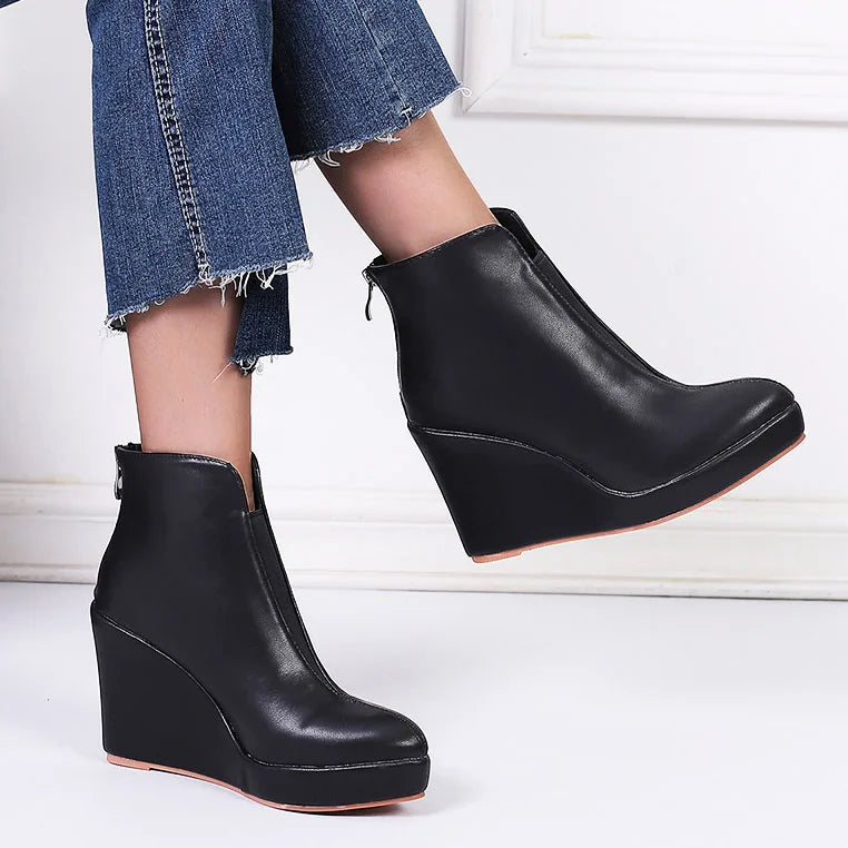 StepUp – Dames Leren Enkellaarzen met Sleehak